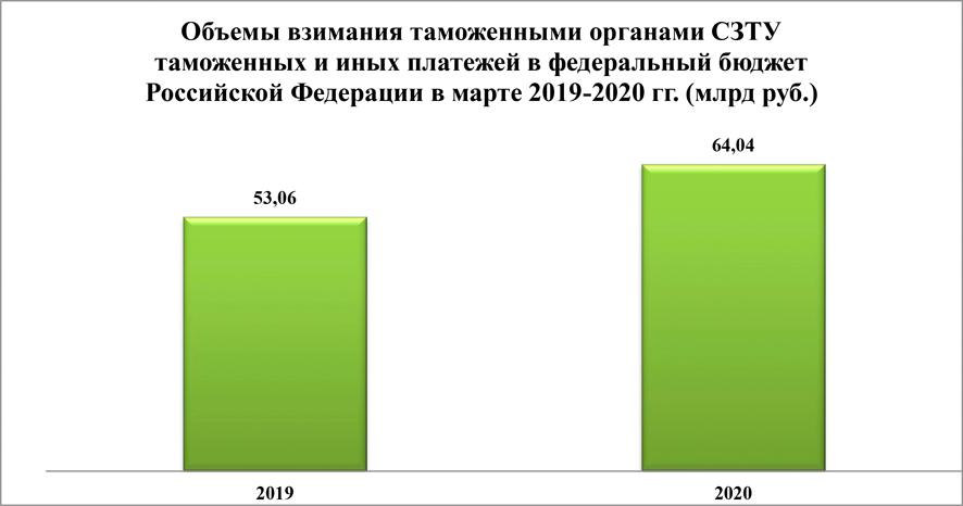 Таким образом, за три месяца 2020 года сумма доходов федерального бюджета, администрируемых таможенными органами, составила 1187,88 млрд рублей.