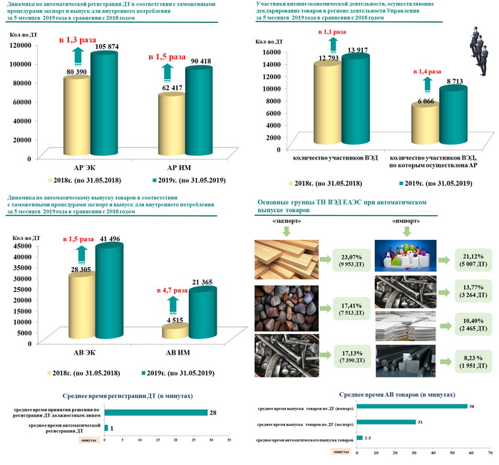 По данным таможенных органов менее 8 тысяч участников ВЭД относятся к организациям с низким уровнем риска. К организациям среднего и высокого уровня относятся соответственно 90 и 11 тысяч организаций. Но перед таможенными органами поставлена задача к 2020 году повысить долю «автовыпуска» до 80%, а долю «авторегистрации» до 99%.