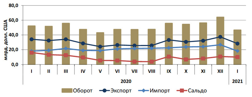 Tazabek - Падение стоимостного объема экспорта государств –членов ЕАЭС в третьи страны по сравнению с январем –декабрем 2019 года (на 20,9%) обусловлено сокращением средних цен на экспортируемые товары (на 20%)и физического объема поставок–на 1,1%. Об этом говорится в аналитическом обзоре евразийской экономической комиссии от 25 февраля 2021 года.